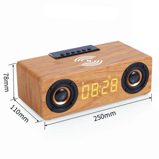 Radio Réveil Bois Stéréo avec Haut-Parleurs Puissants et Charge Sans Fil