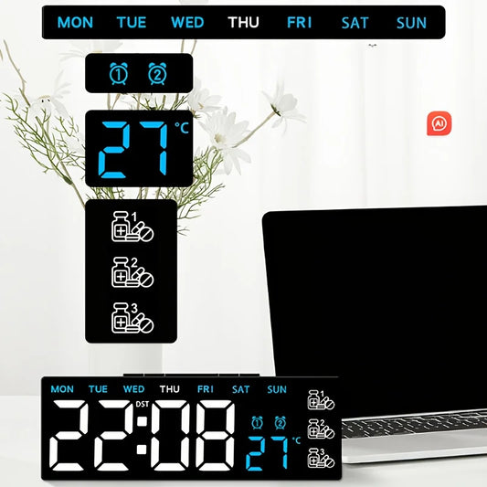 Réveil Digital Grand Écran avec Affichage Température et Alarmes Multiples