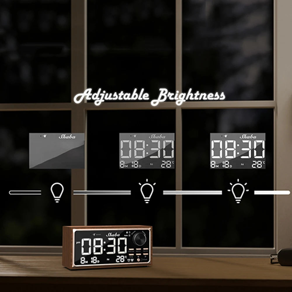 Réveil Bois avec Thermomètre Intégré et Variateur de Luminosité