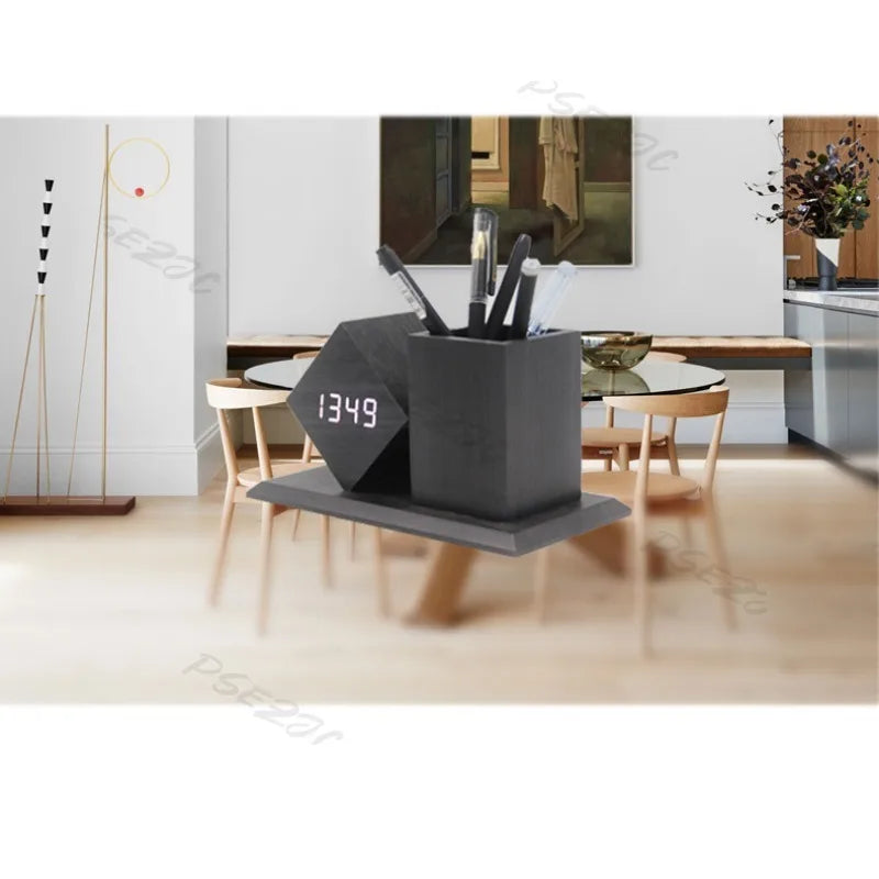 Ce réveil cube en bois est bien plus qu’un simple accessoire de table. Conçu pour allier style et fonctionnalité, il affiche l’heure en LED lumineuse tout en offrant un espace pour ranger vos stylos ou pinceaux.