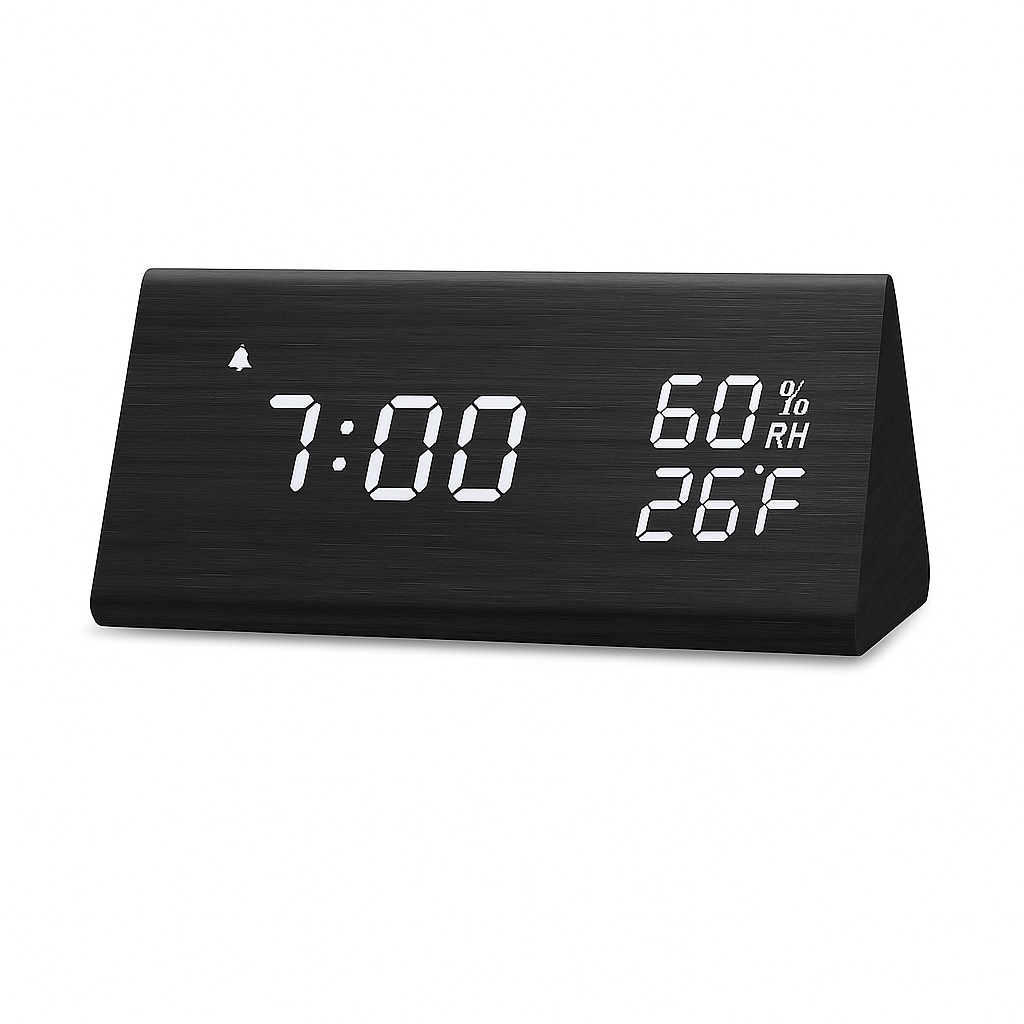 Réveil Bois Triangulaire LED - Design Moderne & Fonction Température
