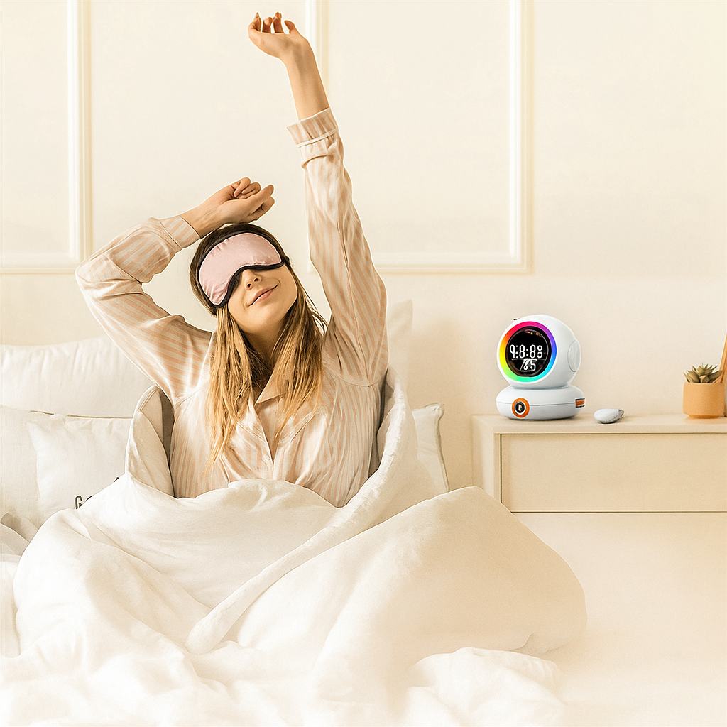 Le Réveil Connecté Astronaute apporte une touche futuriste et magique à la chambre. Son design caoutchouté en forme d’explorateur spatial crée une ambiance douce et rassurante. Parfait pour les enfants comme pour les amateurs d’univers galactiques, il diffuse une lumière apaisante et affiche l’heure clairement. Un réveil mignon, moderne et décoratif pour commencer la journée avec émerveillement.