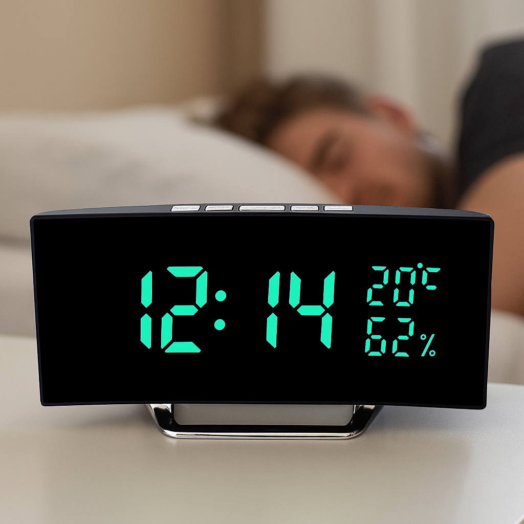 Ce réveil digital LED vous offre bien plus qu’un simple affichage de l’heure. Grâce à son grand écran clair, vous consultez instantanément la température et le taux d’humidité pour adapter votre environnement. Ses trois niveaux de luminosité assurent un confort visuel de jour comme de nuit. Compact et élégant, il trouve facilement sa place dans votre chambre, bureau ou salon. Alimenté par piles ou via alimentation externe, il allie design moderne et praticité au quotidien. Un indispensable pour commencer la journée du bon pied.