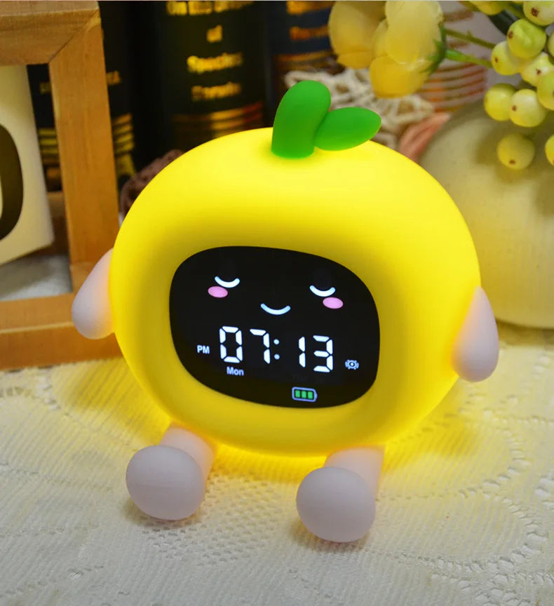 Réveil Éducatif Enfant Fruits – Veilleuse LED Colorée et Alarme Douce