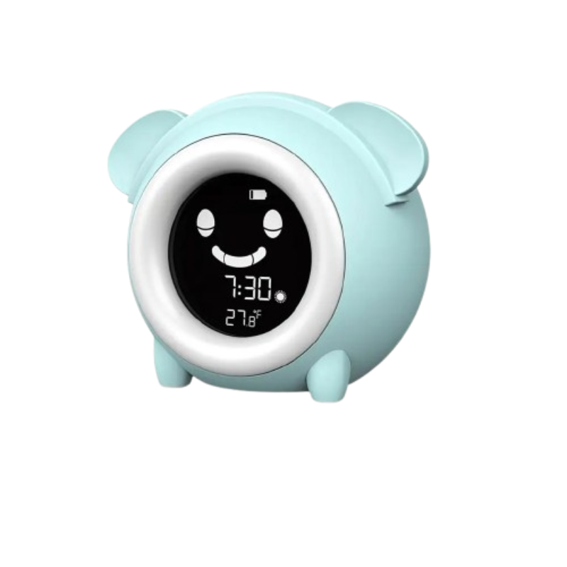 Le Réveil Enfant 4 Ans – Ours Sourire avec Veilleuse LED et Fonction Snooze est bien plus qu’un simple réveil. Son design mignon en forme d’ours, associé à un affichage digital clair, aide les enfants à reconnaître facilement l’heure. Sa veilleuse LED multicolore rassure durant la nuit, tandis que ses réglages de luminosité et volume s’adaptent à tous les besoins. La fonction snooze et les timers intégrés encouragent de bonnes habitudes de sommeil. Conçu en plastique durable, ce réveil est une idée cadeau parfaite pour un enfant.