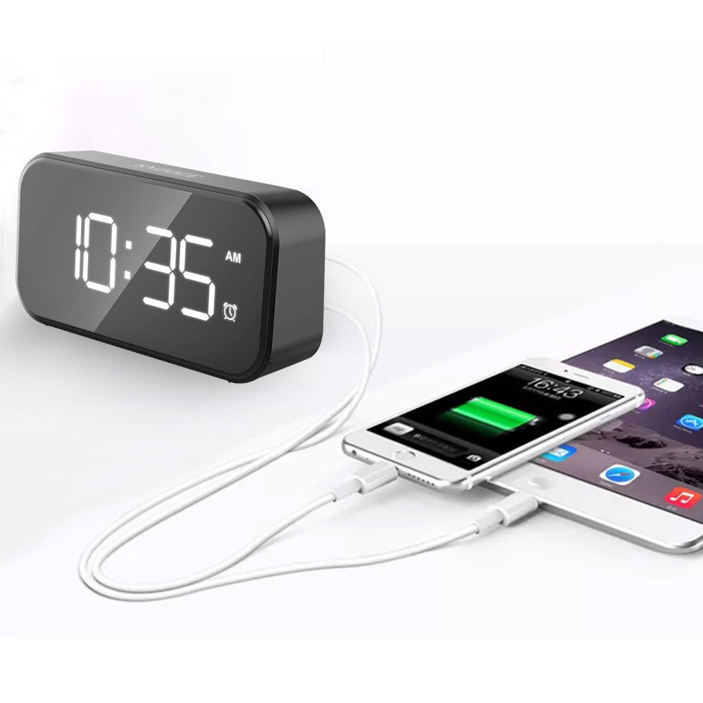 Découvrez le Réveil LED USB 5", un accessoire high-tech pensé pour votre confort. Avec son écran LED miroir, il offre une lecture nette de l’heure et de la température. Il dispose de 3 alarmes réglables, d’un affichage 12/24h et d’un mode économie d’énergie. Grâce à la norme Qi, rechargez votre smartphone en toute sécurité sans avoir besoin de câbles. Élégant et compact, il s’adapte parfaitement à une chambre, un bureau ou un salon, tout en ajoutant une touche de modernité à votre espace.
