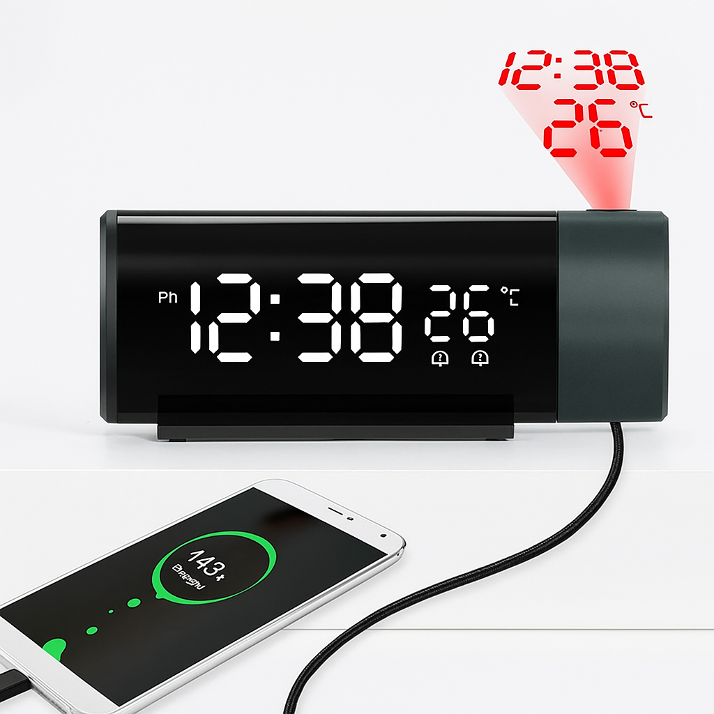 Réveil Projecteur avec Affichage LED et Double Alarme