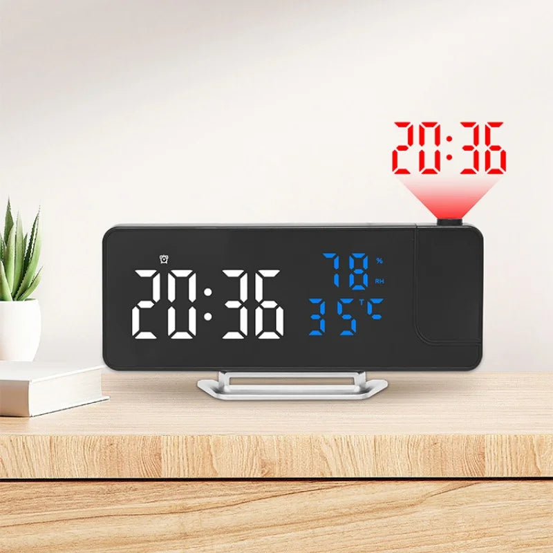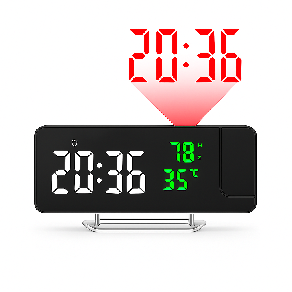 Le Réveil Projecteur avec Température, Humidité et Grand Affichage Digital est bien plus qu’un simple réveil. Il combine lecture optimale de l’heure, surveillance des conditions ambiantes et projection murale nette pour une expérience complète.